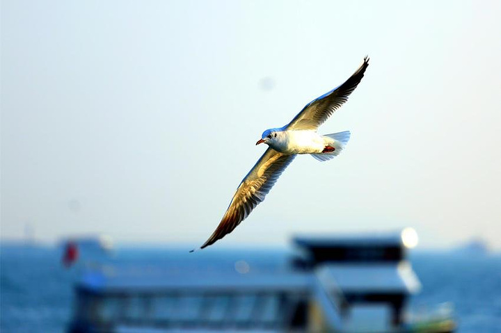 海面上飞翔着成群的海鸥,刹为壮观