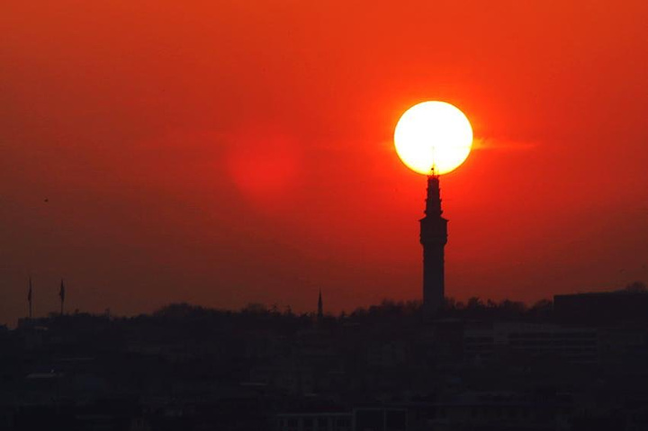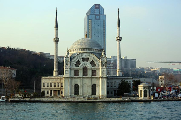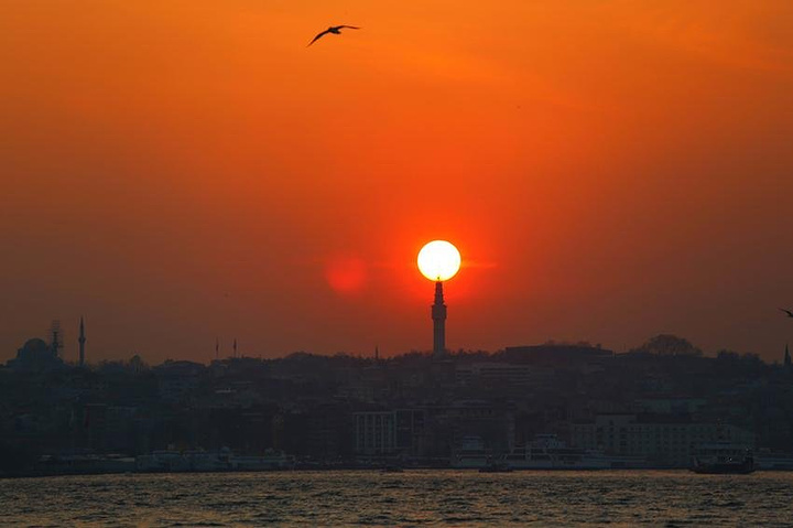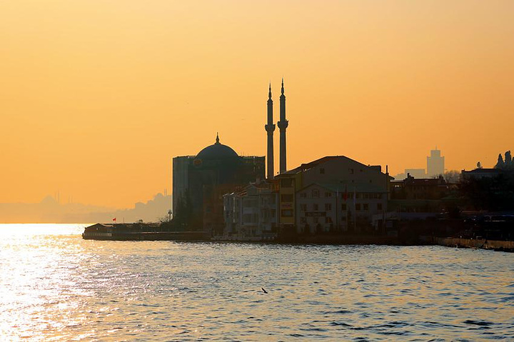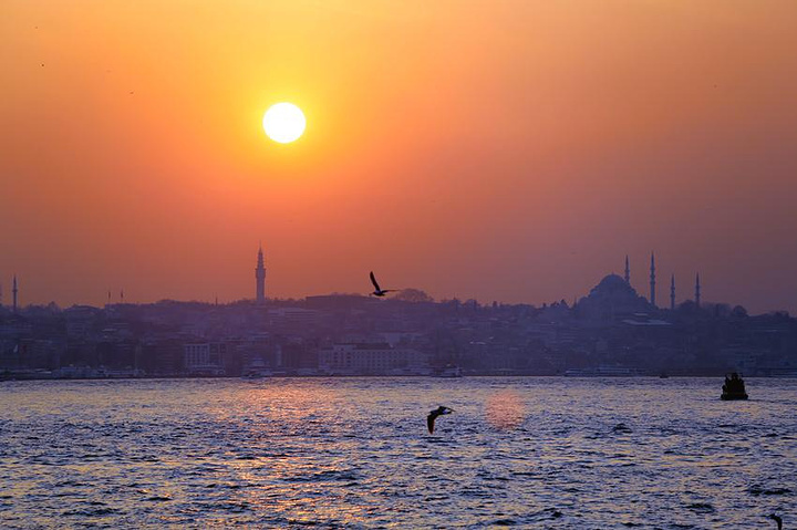 黄昏下的海鸥和清真寺
