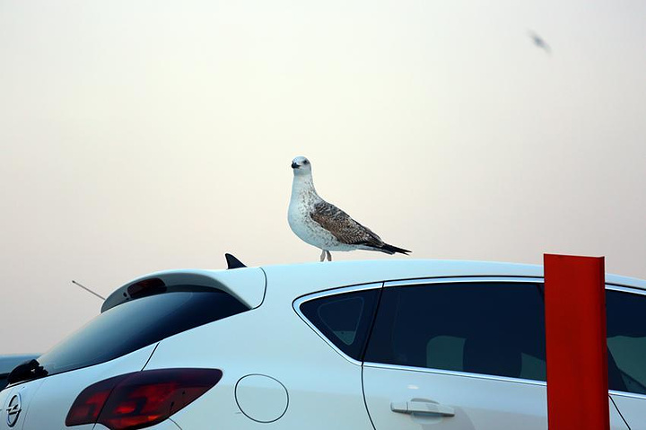 停在车顶上歇脚的海鸟
