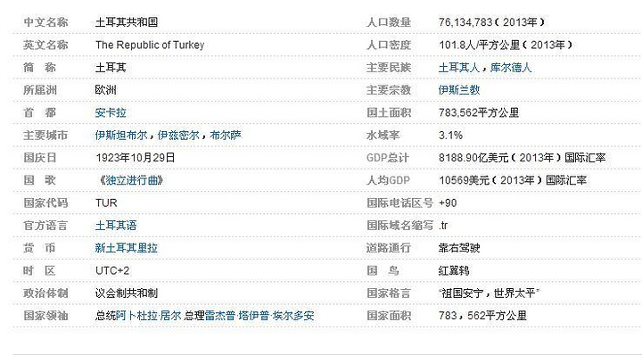 拥有多重性格的土耳其一向是人们心中介于中东和东欧之间的模糊而神秘的地域。土耳其不仅拥有地跨欧亚两大洲的独特地理位置,更令人惊奇的是它还分别沿爱琴海、地中海和黑海构造出了整个疆域轮廓。西部有伊斯坦布尔(Istanbul),棉花堡(Pumukkale),爱琴海港口伊兹米尔(Izmir),艾菲索斯(Ephesus)等,中部有首都安卡拉(Ankara),卡巴多西亚(Cappadocia),东部有人头山,南部有安塔利亚(Antayla),费特希耶(Fethiye)等一系列地中海度假胜地。土耳其拥有极其丰富的旅游资源,类型大体分为三种:历史人文古迹(Istanbul,Izmir,Ephesus,Ankara),自然地貌风景(Cappadocia,Pumukkale)和海滨度假(Antayla,Fethiye)等等。