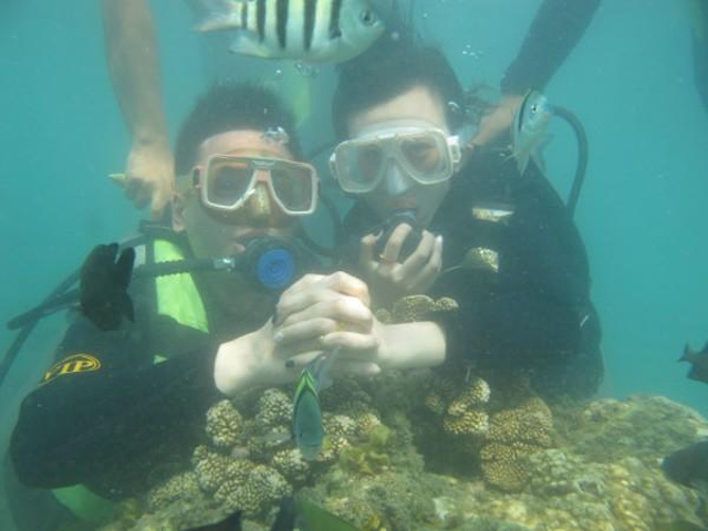 潜水要说下,我遇到的教练还不错,因为我怕水,他会跟我聊天缓解紧张感。但是教练依旧会要求你拍照( 最便宜是一人5张200元,不得合照。不过跟教练多说下,还是可以合照的 ),虽然说是自愿,但是给我的赶脚是你不拍,就不让你那么早下去,下去了也一下就上来