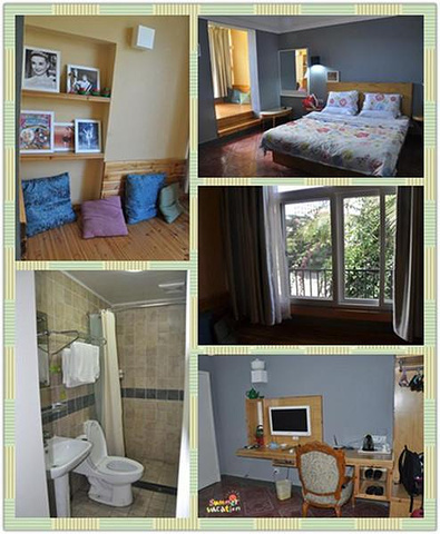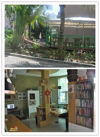 接下来的两天住在大东海,住宿选择了非常有特色的两家店。第一天的这家在一个小区,保安开始怀疑我们的身份居然不让我们进(老公戴上墨镜看上去真的不像好人),给店主打了电话以后才放我们进。不算周折就看到了我们这天颇有特色的旅店"有只船",这家店是由一个别墅改造的,在小区里十分抢眼,远远地看上去矮矮的一栋特别可爱。店的外面有一只改造为卡座的小船,所有住店旅客都可以免费在其中享受悠闲时光。