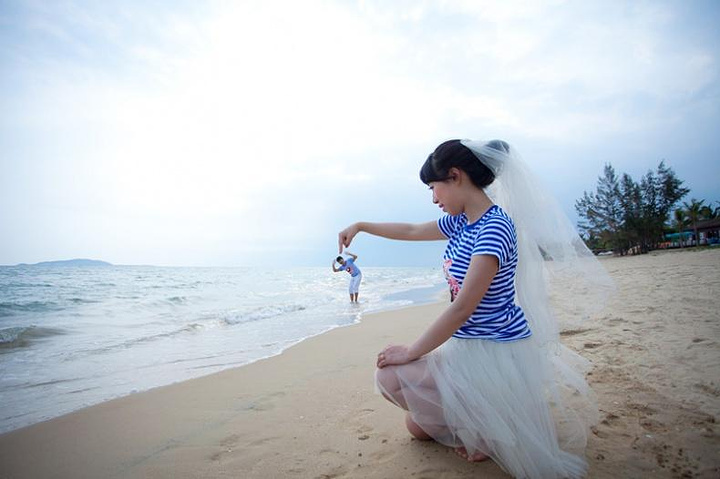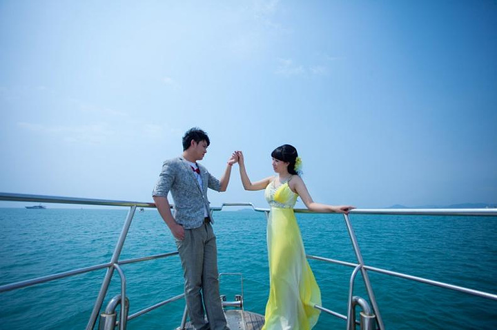摄影师年纪很小,感觉不是很有耐心,拍的不是很满意,最喜欢的反而是自己要求拍的大小人的情侣写真和去摄影基地拍的梦幻水下。拍水下是专门的摄影机构,我不会游泳,教我潜水的老师很耐心,态度很好,摄影师也很有亲和力。虽然拍的时候有点怕,眼睛没睁开,但是通过后期制作,把眼睛P上去了,很喜欢!