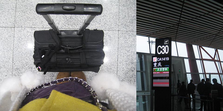 上午十点半,大洋哥来机场接我,大洋哥是大超十多年的铁哥们,北京人在重庆,却仍操着一口正宗的北京口音,呵呵,大超前一天的短信给大洋哥,这样描述我,'身高174cm,长直发,一口纯正的北京话,黄色大衣,上面有六个黑扣子……',呵呵,老公的细心很多时候都会不经意的让我感动,大洋哥却没有按原来约定穿一件绿色帽衫,而是一件黑色夹克,还好,我们都很快认出了对方,呵呵.
