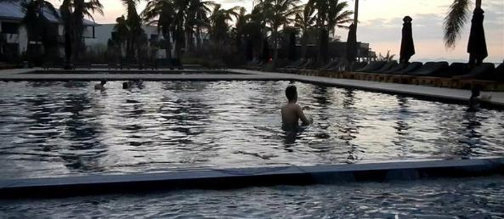 吃完就去泳池玩咯。游游泳,喝喝酒。happy hour。希尔顿酒店调制的酒很好喝。房间是海景房。站在阳台上拍的。我不是摄影达人。好端端的景色被我拍这样。。。