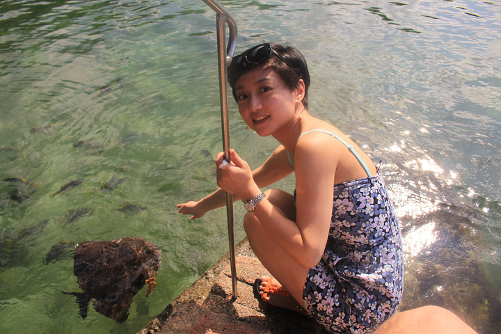 入海凉亭只站了一会,发现大批鱼群!各种热带鱼类,围绕在深入大海的凉亭扶梯口上。足足有50、60公分那么长的大鱼,却一点儿也不怕生,偶尔还害羞的顺着你的指引慢悠悠游来。来自游记Hello!塞舌尔-东非海岛8天流水账