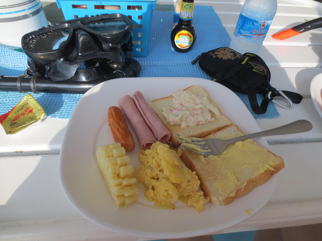 今天的照样有3次浮潜。2餐都在船上吃。话说船上的饮食比岛上好多了。