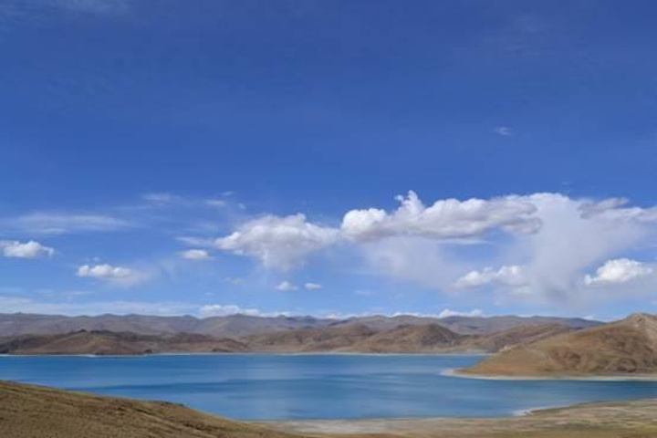 卓雍措被誉为世界上最美丽的水。羊卓雍措,“羊”,上面;“卓”,牧场;“雍”,碧玉;“错”湖。连起来就是“上面牧场的碧玉之湖”。这是字面上对羊湖的解释,而羊湖在藏人心目当中被看做是“神女散落的绿松石耳坠”,因为无论你在那个角度,都不能看到羊卓的全貌,她有三个姐妹,空母错,沉错,巴久错,以即古羊卓雍错四姐妹在巨大的湖盆中,手足相连,难以割舍,共同组成了让我们肉眼看不到边的圣湖。她的身躯蜿蜒在群山中达一百三十多公里,只有在地图或是高空你才能惊喜的发现她犹如耳坠,镶嵌在山的耳轮之上。不同时刻阳光的照射,她会显现出层次极其丰富的蓝色,好似梦幻一般。