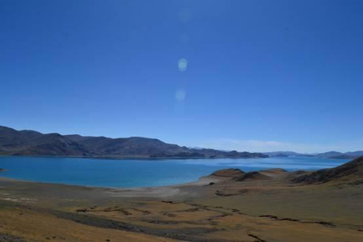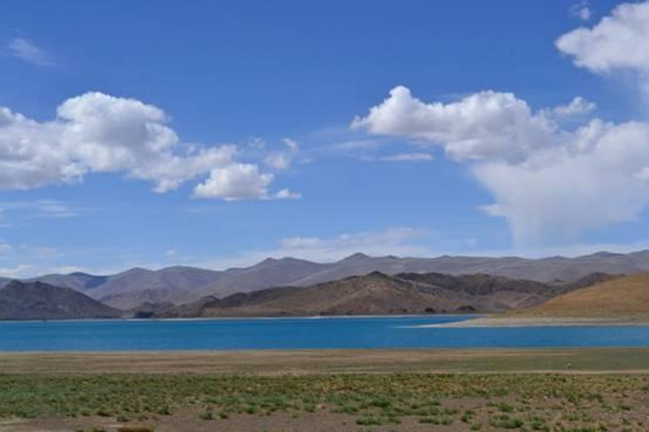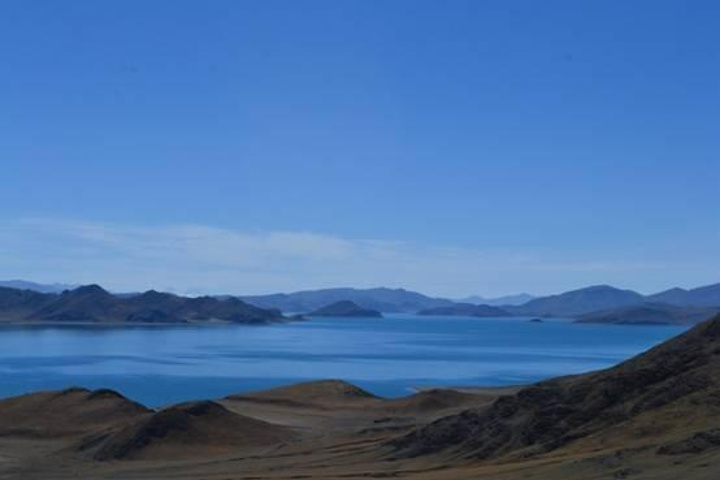 站在羊湖边上,神奇的湖水,那个纯净的可以听到自己心声的地方,站立湖边,万籁寂静,心中变得如湖水般清澈。我终于知道为什么羊湖被誉为是世界上最美丽的水了。虽然说与纳木措、玛旁雍措并称西藏三大圣湖,但是她的惊艳远超纳木错和玛旁雍错。,羊湖在藏人心目当中被看做是“神女散落的绿松石耳坠”,那碧蓝的湖面果真就如其名,像一块碧玉镶嵌在群山之中,摄人心魄,太美了。它是是一个无论远望还是近观都让人心旷神怡的地方。无论你在哪个角度,都不能看到全貌。