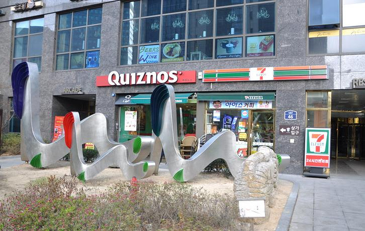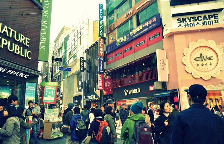 从洛山公园出来,就到达购物的天堂:明洞和乐天免税店!导游给了4个小时活动时间让大家自由购物。