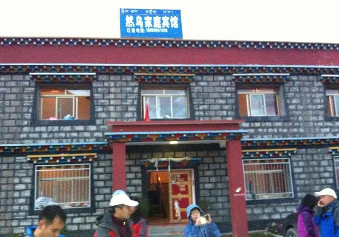 晚上就住在然乌湖边的一家藏族家庭宾馆,好奇心驱使厚着脸皮去楼上他家参观了一下,客厅非常华丽精美的藏族特色装饰,正面墙上供奉莲华生唐卡,女主人和老婆婆在包一种包子,男主人逗着一个9个月大的漂亮宝宝,一家人非常温暖。晚饭还是镇上的川菜,石锅鱼非常好吃,每人至少喝了三碗。不过当知道是然乌湖里悄悄打捞的鱼时,还是觉得有点罪过,破坏生态。今晚虽然3900,大家都感觉不大,睡了。