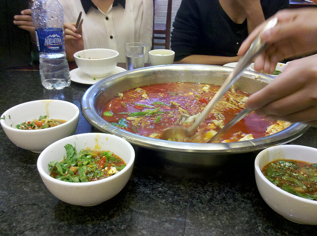 ¥390,四川大学西门旁,科华路,上次去吃的时候是8月,又热又辣,那种一头一脸汗的感觉实在是太爽了,这次吃要了中辣,天气也不是太热,所以没有上次的那种感觉,不够爽,其实可以要个超辣high一下,我们一个人平均可以吃掉一斤来自游记重庆--成都☞吃家老爷们的潇洒游记