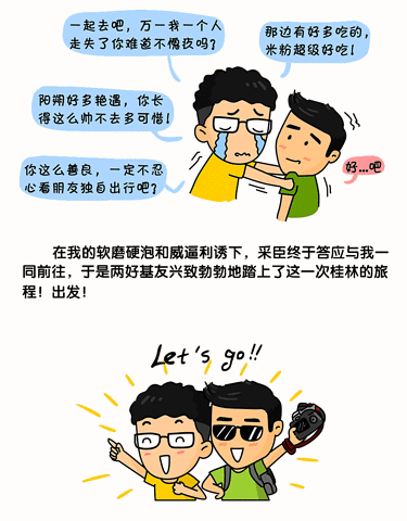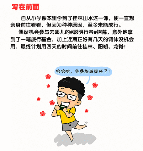 自从小学课本里学到了桂林山水这一课,便一直想亲身前往看看,但因为种种原因,至今未能成行。偶然机会得到了去哪儿聪明行者旅行基金,加上近期正好有几天的调休没机会用,最终计划和好基友用四天的时间前往桂林、阳朔、龙脊!来自游记【手绘桂林游记】好基友闯桂林