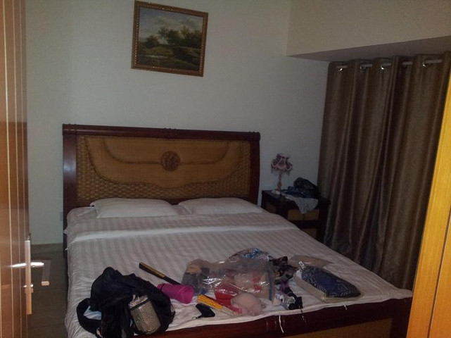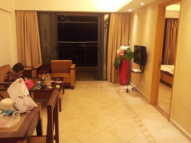 更倒霉的是坐在了鸡翅膀上,外面的景色看不到了,还好是晚上。到三亚22点多了,刚下飞机就是一股热浪袭来,还以为攀枝花就够热的了,比起三亚来小巫见大巫了,晕头晕脑的打了个的就到了三亚湾金中海蓝钻小区,才15块,这个家庭旅馆是淘宝上订的,便宜,228一晚,还是两室一厅的,刚好够一家人住,小区环境不错,还有免费的泳池