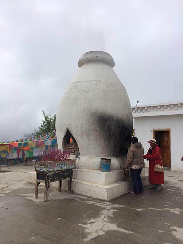 云雾依旧很大,车子的转山之旅在这片云雾中再一次开始。于是立刻想到,我们在车上看风景,但兴许,我们也成为了别人眼中的风景。到“雾浓顶”时,更能体会到雾有多浓了。再一次被不一样的风景震撼之后,我开始了这次旅行中的藏传佛教体验之旅。买一把香柏,放进香炉,作三个揖,抓一小把五谷杂粮,分三次撒到香炉里,再用旁边的香柏枝蘸上清水,分三次撒到火上,念着六字真言,绕着香炉顺时针走三圈,虔诚地许下愿望,愿我的家人一生平安!