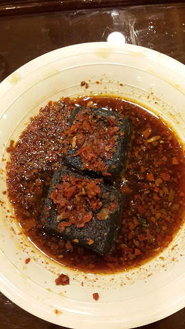 臭豆腐,她们说太辣,而且都被烫到嘴唇了,所以一直对这里的臭豆腐怀恨在心。其实我还能接受。