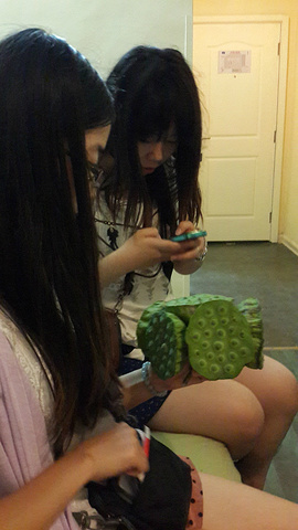 湖南貌似很多莲塘,在长沙到处看见挑着扁担卖莲蓬的。这两个妞还没有试过这样直接吃莲子,我说挺有意思的,而且这东西下火。她们后来买了2袋带回家做手信。