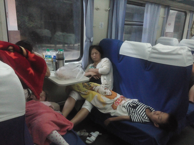 没补到卧铺,可伶的人们只有这样睡了,车上空调冷,很容易感冒,建议做车时穿长袖带薄毯子。