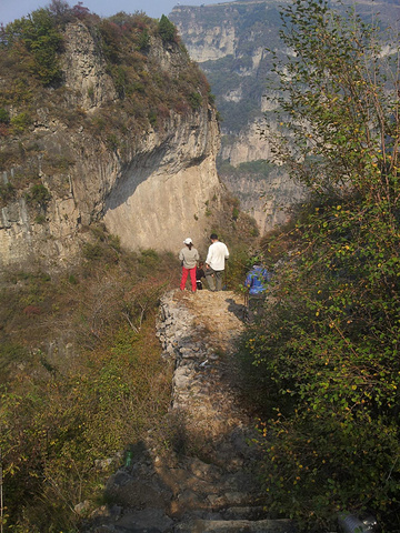 原本今天的路线是天生桥、万佛山、瑛姑峡、鹅屋,然后第二天从猫路下来的,可是没走多远就遇到了新的状况,据说是因为山西人把省道改成县道,不让河南的大车通过,所以河南人民一发狠,把路给堵了。遇到这种让人哭笑不得的情况,我们也就只好改一下行程了。