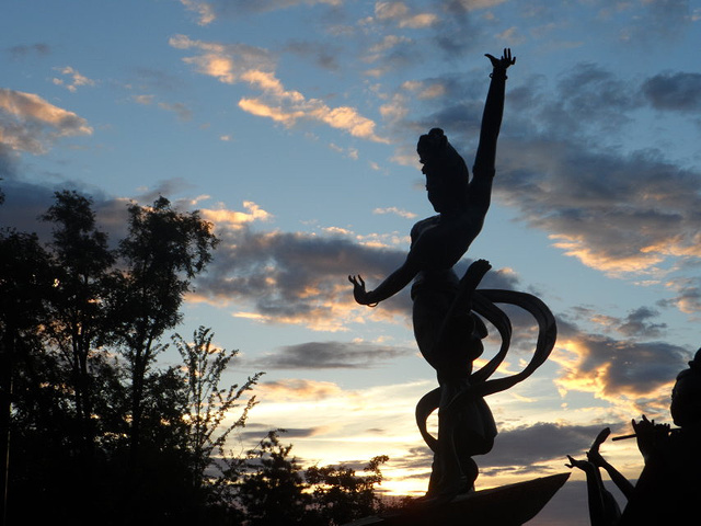 随着天色渐渐变暗,舞台也慢慢展开,一幕幕的水花与火光,甚至骊山也变为星空背景的时候,全场的观众都不禁深深陶醉在那美轮美奂的场景和动人的舞姿当中去了。。