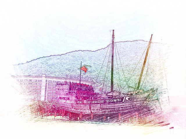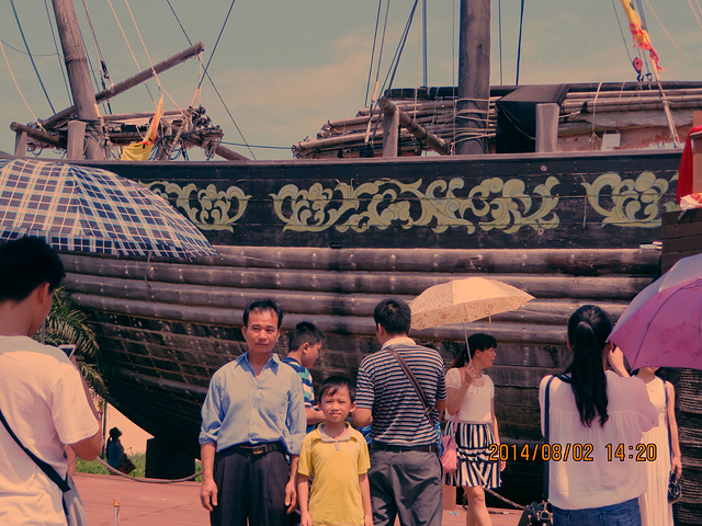 博物馆由5个椭圆形组成,“南海一号”有800年历史了,是中国沉船年代最长远,船体最大的商船。由于时间紧迫,只在外面逛逛。周围风景不错。这是南海一号的模型,比例是1:1。P了张彩铅版的南海一号。{这是模型}来自游记带快乐出行——阳江