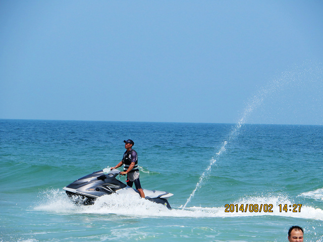 很帅!赞一个!海上摩托,很刺激吧,很想体验一下。可惜。。。只可远观而不可亵玩焉!