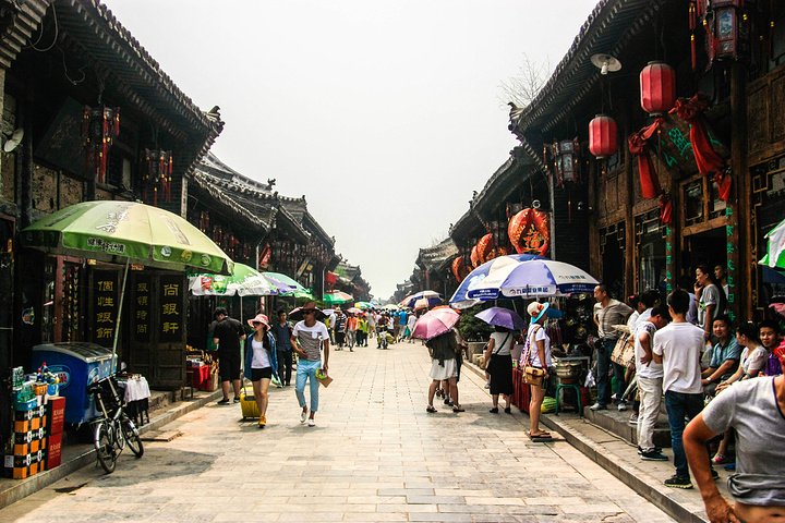 从太原南站出发,40分钟能到平遥高铁站。平遥高铁站什么都没有,还在建设中。公交是招手停的,可以直达古城。古城里客栈很多,而且都是明清风格的,如果资金充足的话可以住有老家具的房间。古城里吃的东西很贵,但既然出来玩嘛,买点尝尝还是可以的。