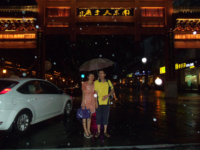 世纪公园-人民公园-人民广场地下商业区-南京夫子庙 最后一天了,时间太短暂了,玩也没有玩够,去世纪公园看了,门票10元,人民公园就是市民休闲的好去处,什么都有,上海人的精神生活太丰富多彩了,下午15.30分,上海虹桥到南京南,2小时不到就到达,做地铁1号线到三山街4号口出,夫子庙瞻园正对面,中华路上,提前在去哪儿定,南京长居客宾馆,就是小旅馆了,交通相当方便,放下行李,稍些休息,就去夫子庙逛,从上海走就开始下点雨,到南京就大了,正好,不热更舒服,夫子庙夜景不错,人也不多,夜游秦淮河,但路面就是太差了,和景区不对称了,哈,