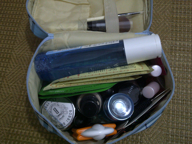 薇姿爽肤水 植村秀卸妆油 BB粉底液 雅漾防晒 有色唇膏 防晒唇膏 眼线膏 眼影 腮红 1色 腮红刷 眼线刷 润肤霜 面膜 为了减轻负担,妹子们去屈臣氏买些分装的小瓶,或者那些买护肤品送的小瓶也可以,减轻负担