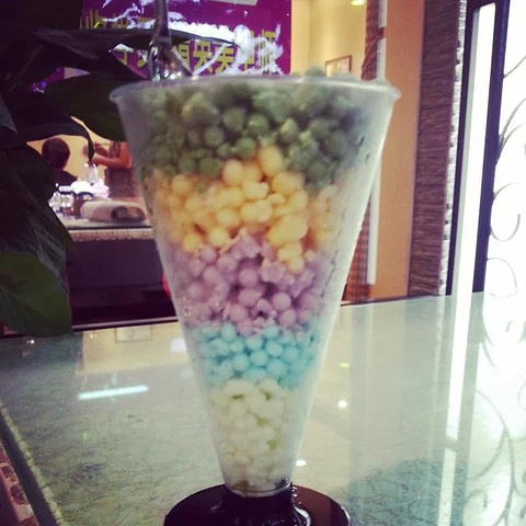 晚上在赛格逛街时在负一楼的美食街无意中看到分子冰淇淋♥♥♥ 超级可爱的冰淇淋 选择了29元5个色的大杯!抹茶青柠芒果朗姆酒黑加仑 好吃到爆!吃货们不要错过呀!两个人吃的杯子都要舔干净了-.-