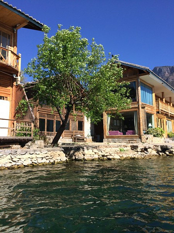 拉着蓝色窗帘的就是我们的房间,很舍不得泸沽湖,太美太美了。