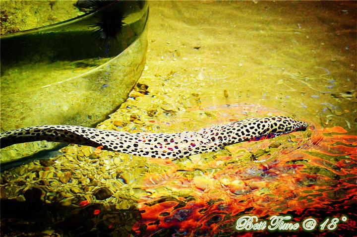 机场的观赏鱼池有各种鱼儿