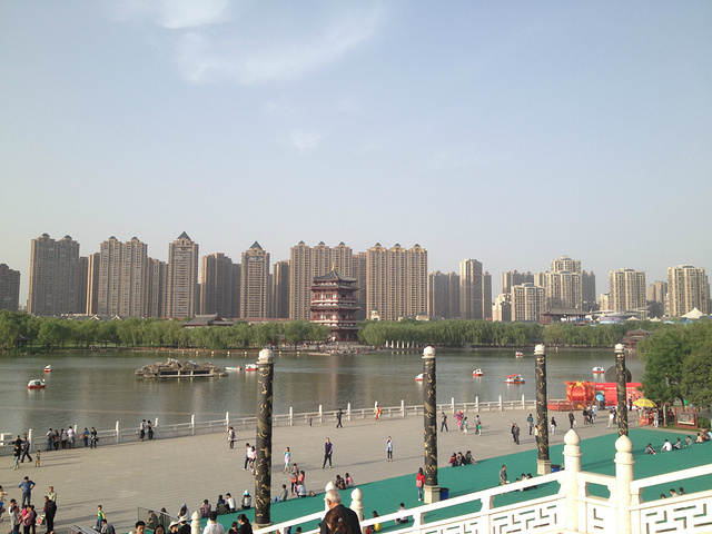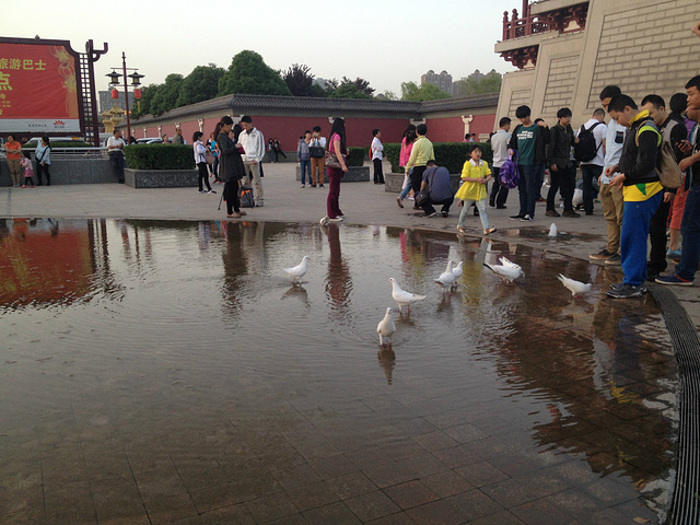 时间不早了,要赶去大雁塔,其实也不远。应该是芙蓉园东门,有鸽子啊,不怕人的