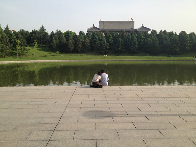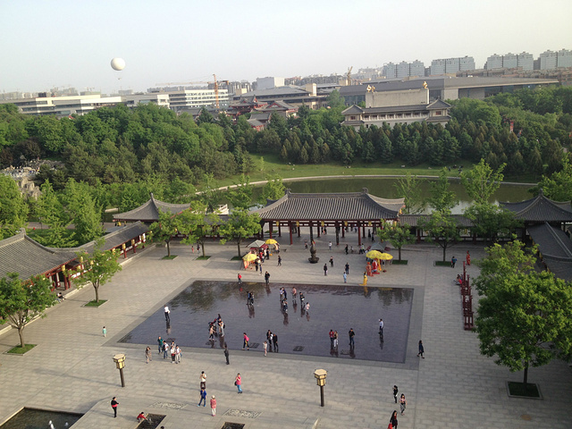 芙蓉园里有很大一片水,晚上有【水幕电影】,很多人会看的,我们没有,因为更想看亚洲第一的音乐喷泉,在夜晚,在大雁塔。