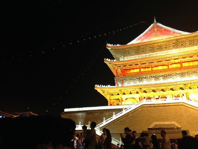 看完音乐喷泉要回鼓楼那边的住处了,人山人海,尽情挤吧,能准确挤上车还有座,我给自己赞一个。因为平时在学校要出行就要这么着挤,虽然挤的功夫不如人,但阵势还是见过的,不惧。在鼓楼下了车,街灯已经点亮了,钟楼鼓楼的夜景很美,大家千万别错过,很美。