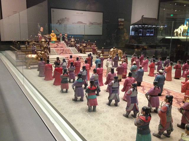 可以进入了!有一些还原当年大唐盛世万国来朝的铜像很有趣,不过别摸啊,掉颜色,黑的