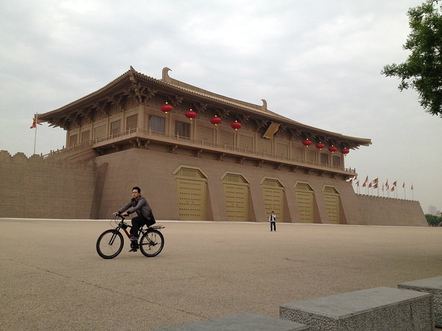 抬头就是西安城的古城墙哦,很棒,后面去城墙骑车还会提到。