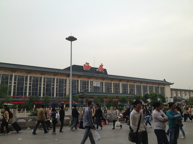 坐4.30当晚的火车,到西安市是早上7点左右。一整晚没怎么睡,出来天有点阴。因为到达的时间刚好是早上,而住处要下午2点才可以登记,我们决定背着行李先玩儿一上午。年轻就是好啊。室友和她同学是另一趟火车,我先到,看着路标找到游客中心,在人挤人的卫生间里上了厕所洗了脸,然后坐在外面的石凳上掏出护肤品开始抹。这个时候根本不在乎形象,别人也不看我,不过有点影响市容所以还是快快涂抹好,主要是抹防晒霜,皮肤需要。