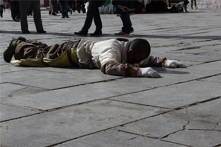 对于游客来讲,八廓街远比大昭寺更丰富多彩、平易近人,绿松石、红珊瑚、蜜蜡、天珠的饰品,远比藏传佛教的历史更通俗易懂,回想起来有点买椟还珠的感觉。女人们毫不吝啬地用买金子的价钱去买石头,男人们满头雾水地在街上等待,不明白石头的吸引力在哪里。见到了几万人民币一串的极品绿松石、摸过了几十万人民币一串的金刚、看过了无价的老天珠,低头盘算微薄的工资,还是去玛吉阿米喝酥油茶吃藏餐来得实在。