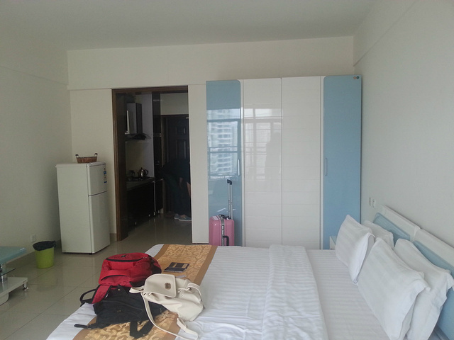 下午一点多抵达位于三亚湾的金凤凰公寓,房间在24层有40多平米,电视、冰箱、空调、洗衣机俱全,阳台可以看到三亚湾,我们将在这里度过5天。