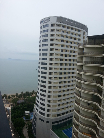 可以看到三亚湾的海水,天阴有些灰蒙蒙的。喜来登酒店前面的海月广场,据同事说有广场舞大妈扰民,我们没有听到任何噪音。