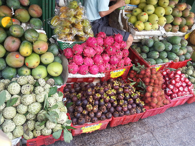 热带水果很诱人,价格基本都在10-20一斤,我还是不会砍价啊