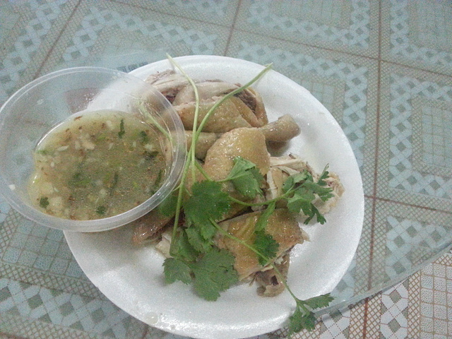 文昌鸡,海南特色菜,老公在市场里摊位花48买了半只,鸡肉不是很烂没有什么味道,蘸上酱汁味道还不错,老公不喜欢吃,我一个人没吃完浪费了。