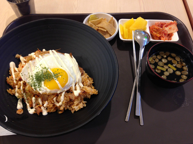 第一天的中饭在e-mart吃的,7000韩元,别看简单,非常美味,泡菜很正。点菜是用机器点的,上面只有韩文,根据图片选择吃的套餐。选好了让服务员帮忙确认,因为不懂韩文,不知道“确认”两个字是怎么样的。这里有段小插曲:一开始,我以为是服务员过来点餐的,坐下来以后发现她怎么不招呼客人啊,于是上前问了她,用蹩脚的英语,可是她不懂英语,就在很困惑的时候,看见两个东南亚人站在机器前,聪明的我一下就想到了用机器点餐,于是就跑了过去,我让那两个foreign先点,结果她们也不会,于是我先,等我选择好图片,木了,哪个是确认啊,看不懂,于是foreign叫来了服务员,终于在完成了我在韩国的第一顿饭,不容易啊!