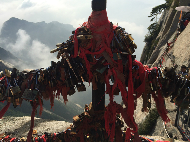 到处是锁头的金锁关,可惜我们赶着下山坐回程的车,所以都没顾得上写个愿望也拴上一把.O(∩_∩)O~