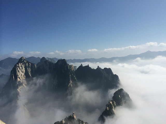 在缆车上拍的华山.仙雾缭绕,让人感觉身在仙境.
