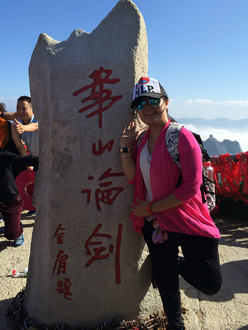 华山论剑.因为实在人太多,没单独拍石碑,所以献上LZ的私房照一张.O(∩_∩)O.不过话说在网上看到一篇游记,说看到了华山论剑才算到过了华山,所以一直以为只有一个“华山论剑”的石碑,在这里为了合影等了差不多20分钟.坑爹的是到后面才知道每个峰的峰顶都有个这样的石碑.+_+
