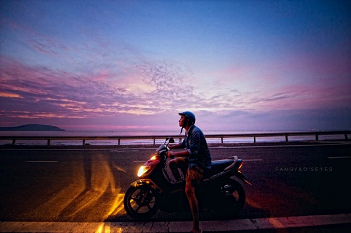本打算一早起床便前往 “白沙滩”看日出,凌晨4点便起床出发的我们,在黑漆漆的夜色中骑着摩托出发了。半小时后在加油站加油,顺便问工作人员离白沙滩的距离,结果加油的小伙儿连说带比划告诉我们,你们加的油还不够跑到呢!距离还有20KM!我们顿时傻了(这就是不看攻略的结果)看着天边已有亮光,算算路程和时间我们看来是无法在日出前赶到白沙滩了。最后决定还是放弃前行,决定回到昨晚那个渔村集市去看看。