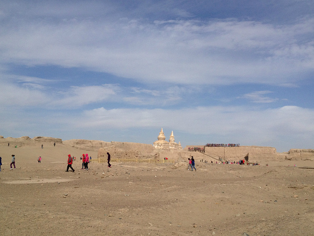 远处是即将被沙漠吞噬掉的黑城城墙遗址。