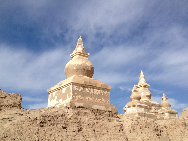 【关于黑城】黑城遗址是古丝绸之路上现存最完整、规模最宏大的一座古城遗址。该城建于公元九世纪的西夏政权时期。公元1372年明朝大将冯胜攻破黑城后遭废弃。至今城内还埋藏着丰富的西夏和元代等朝代的珍贵文书。现存城墙为元代扩筑而成,平面为长方形,周长约1公里,东西434米,南北384米,周围约1600米,最高达10米,东西两面开设城门,并加筑有瓮城。近年来,由于周边地区沙化严重,流沙从东、西、北三面侵蚀黑城,许多遗址已埋于沙下。